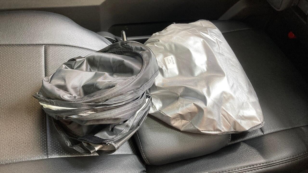 フロントの日よけです。車中泊時の目隠しにもなります。Amazonで約3千円のやつです。