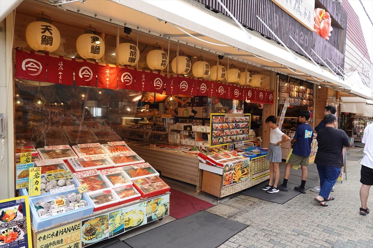 駐車場から海岸線への道は、お土産屋さん、海鮮屋さん、カフェなどが並んでおり、かなり賑わっていました。
