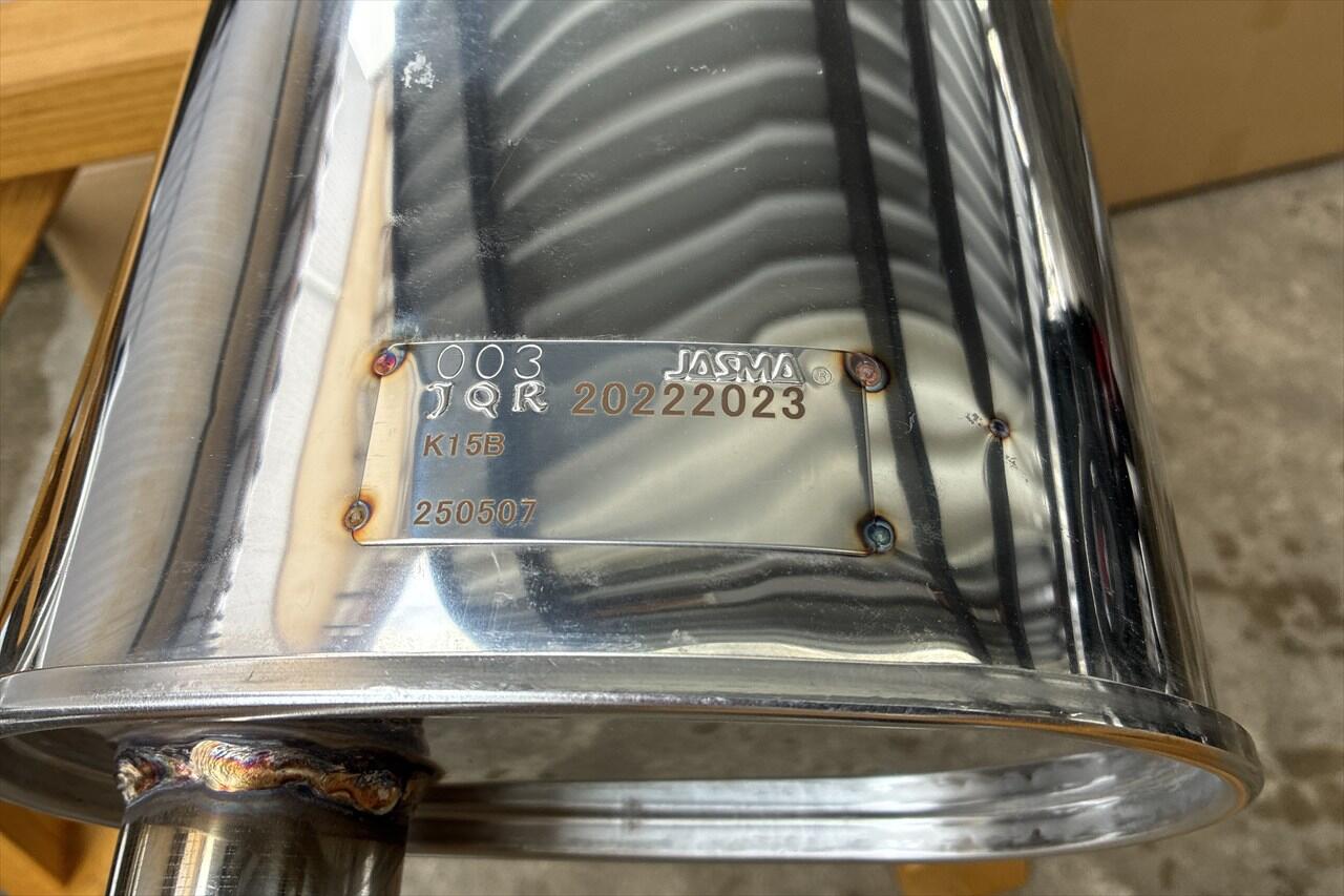安心の車検用プレート付きです。(HKSのマフラーは、ジムニーとシエラ共通でしたが、こちらはシエラ専用のようです)