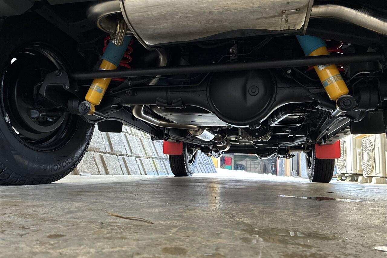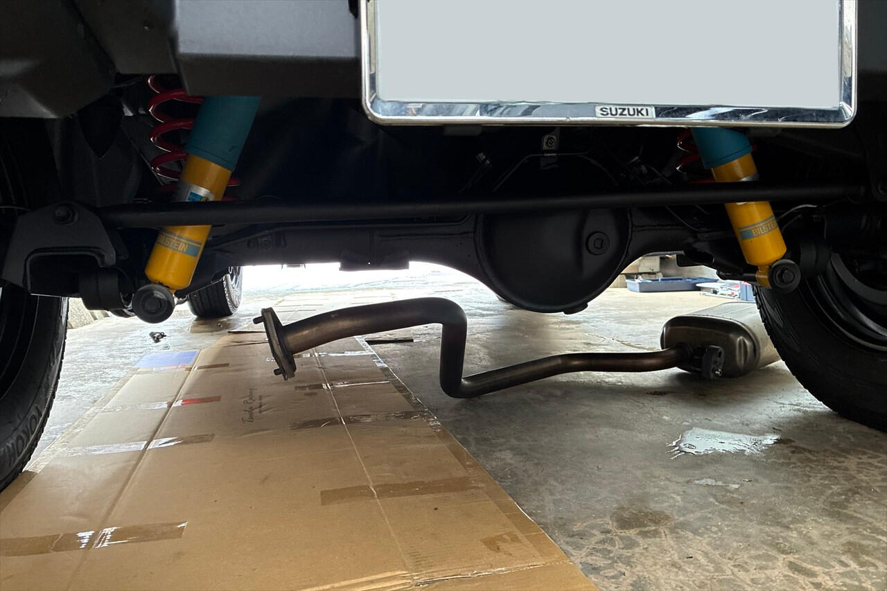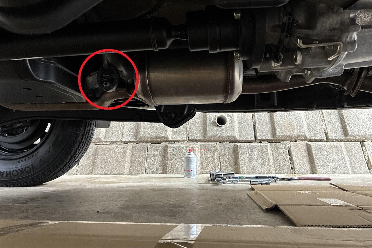 - ジムニーは車高が高いのでジャッキアップしなくても、段ボールを敷くだけで車体下に潜り込めます。