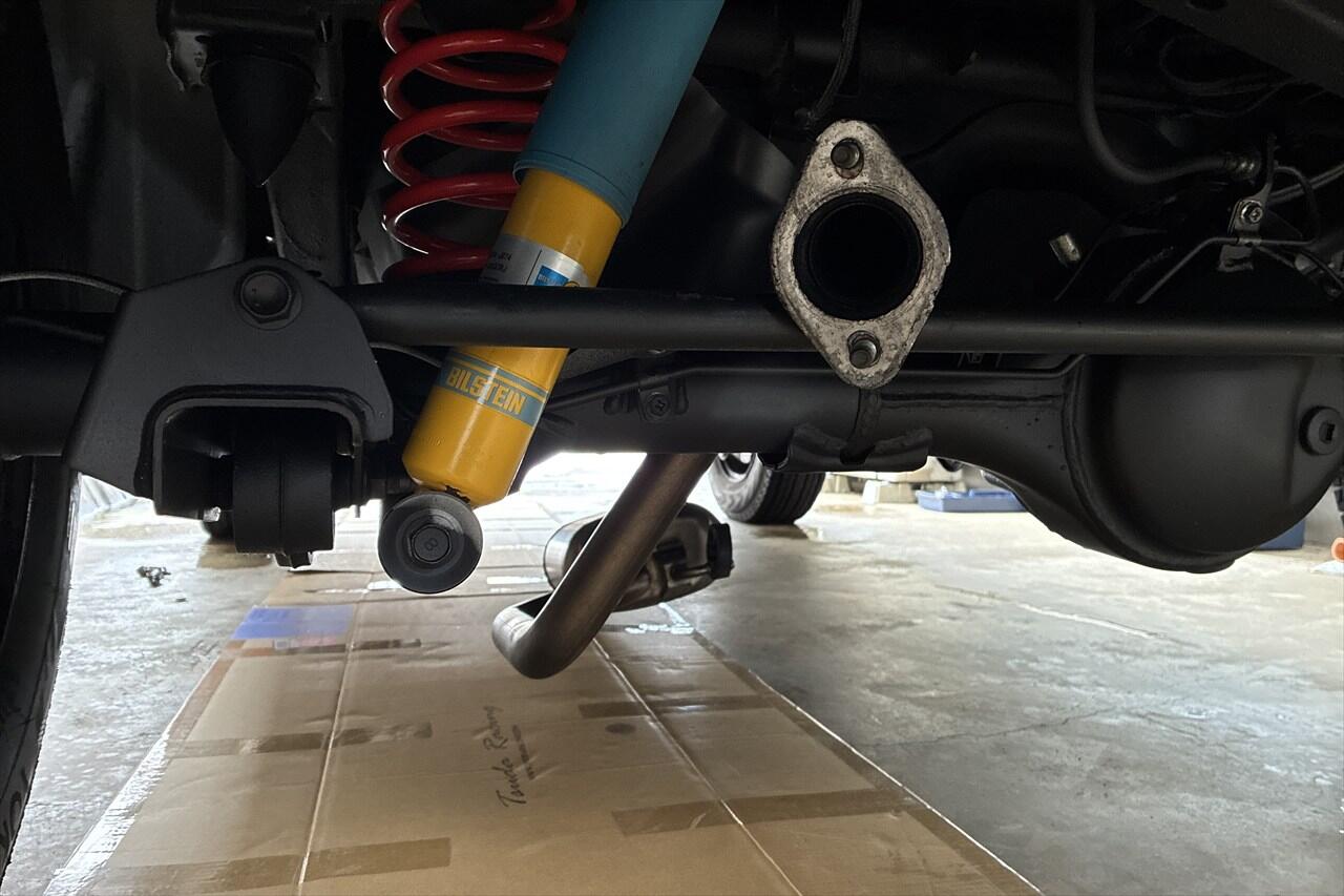 - これで中間パイプはゴムハンガーだけでぶら下がっている状態になりました。