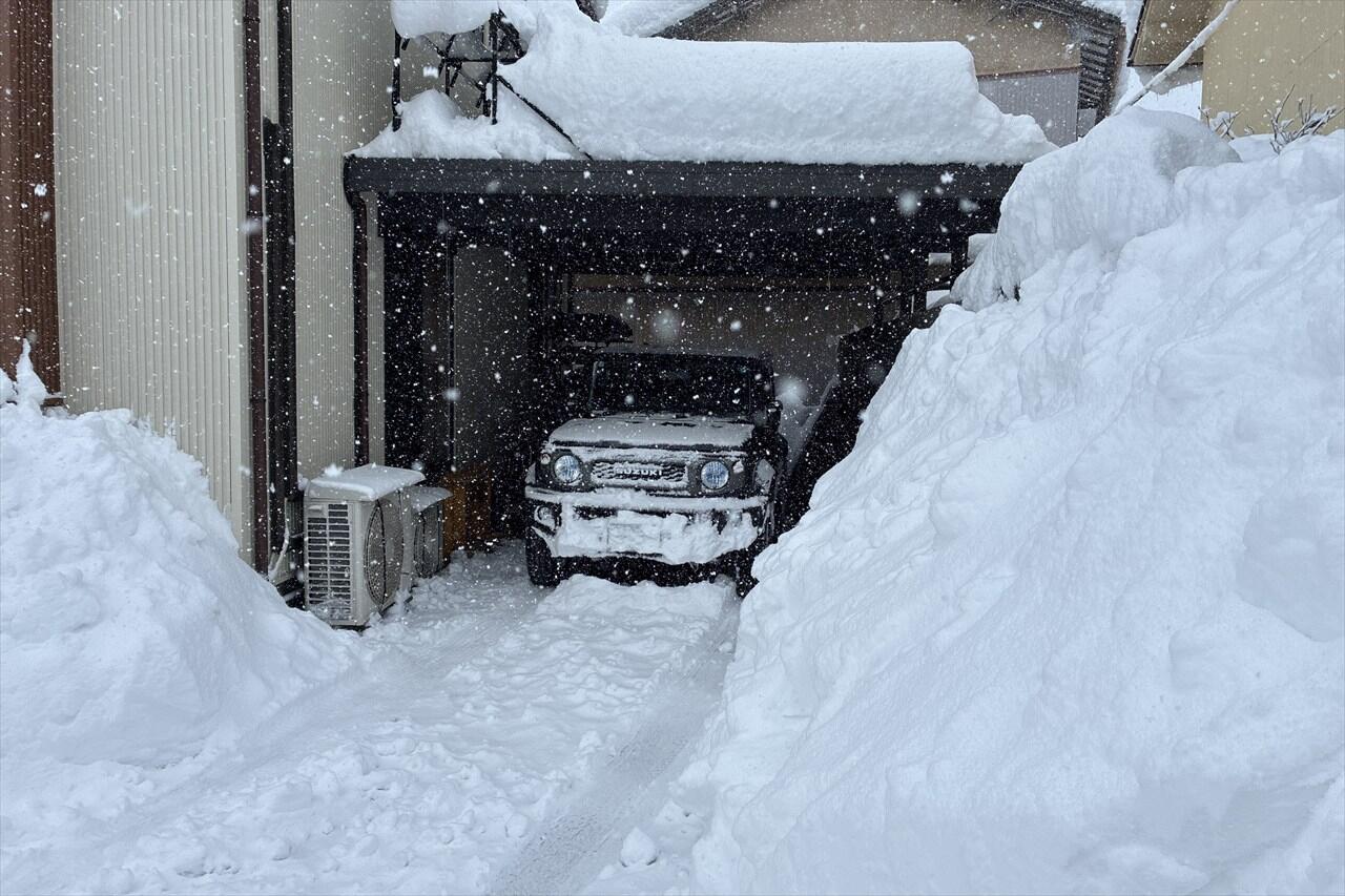 ジムニーシエラなら出動はできるんですけど、道幅が車1台分で、他の車が坂道でスタックしているので、この日は家で大人しくしていました。(昨日、買い物しておいてよかった)