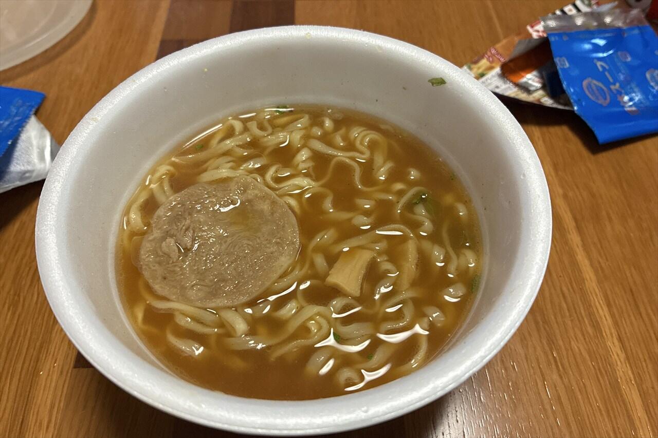 具材は良い感じに出来ましたが、麺が伸びすぎました😢。ポッドのお湯で戻す想定なので、IHの沸騰したお湯だと戻り過ぎました。。